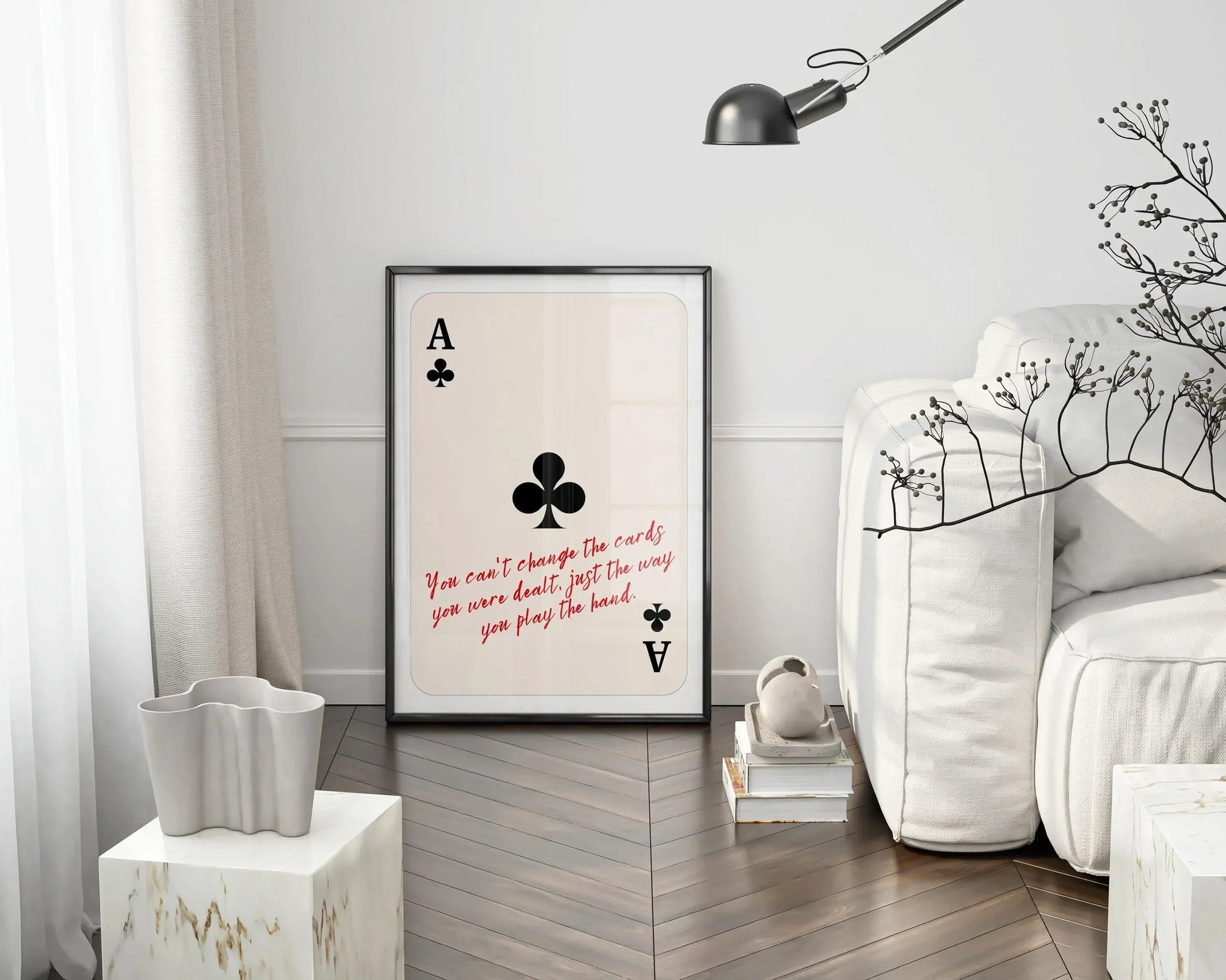This black and white card print brings a clean, graphic look that works perfectly in modern interiors — from game rooms and offices to living rooms and stylish dorms. Simple, striking, and timeless.