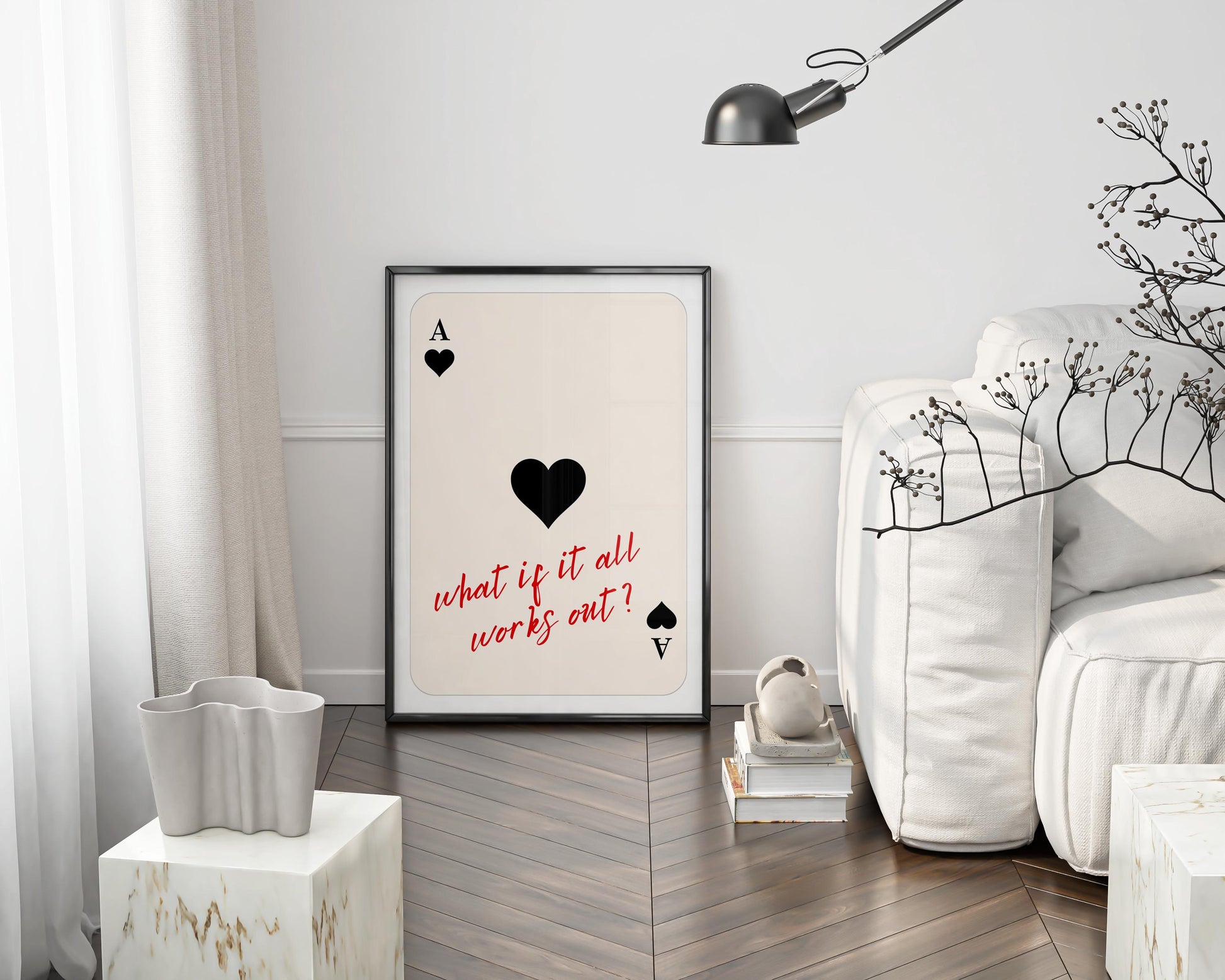 The Ace of Hearts Poster is a bold, motivational statement — “What if it all works out?” — captured in a trendy Y2K aesthetic.