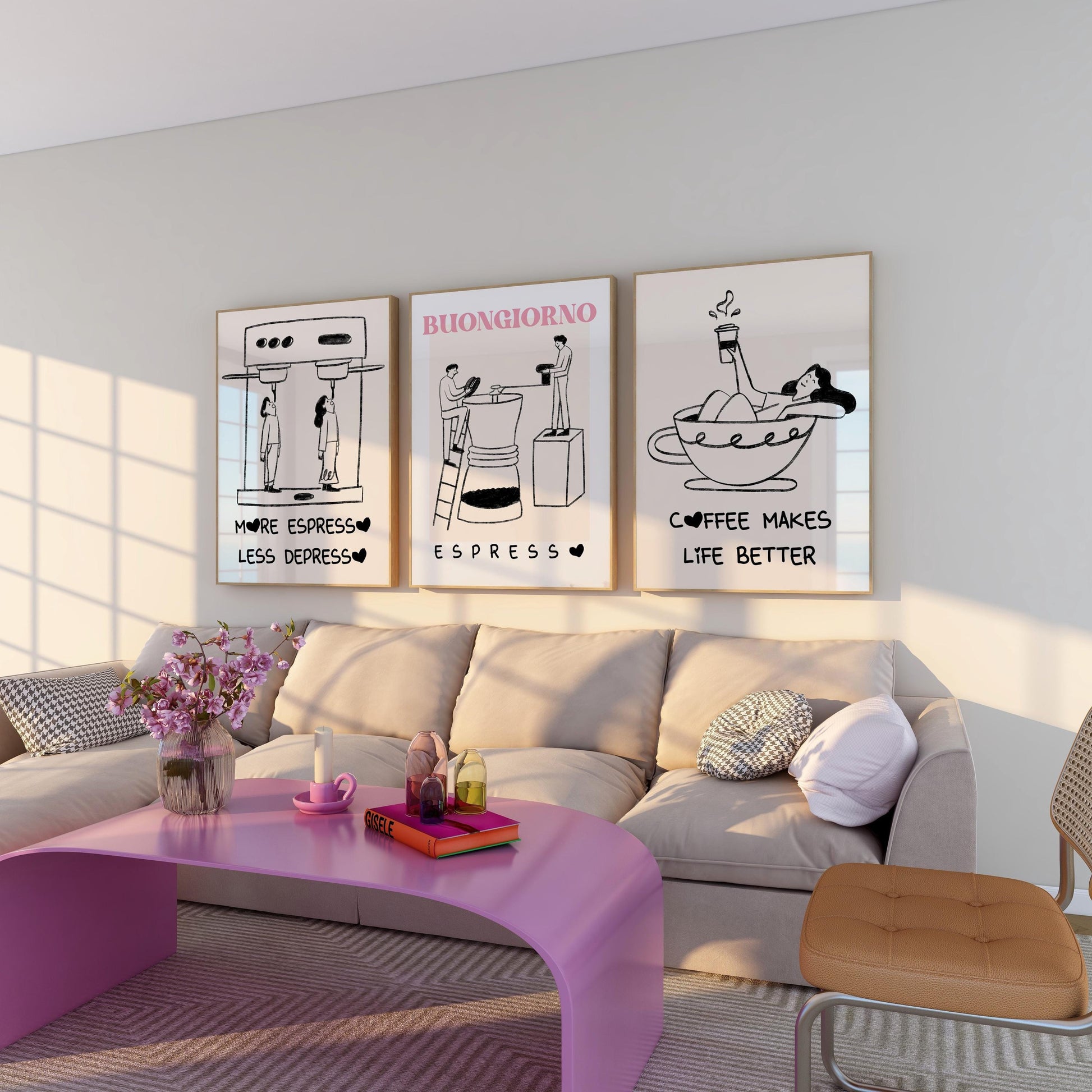 This set of 3 espresso-inspired prints blends minimalist design with playful coffee humor — perfect for coffee lovers, cozy kitchens, cafés, dining corners, and modern apartments.