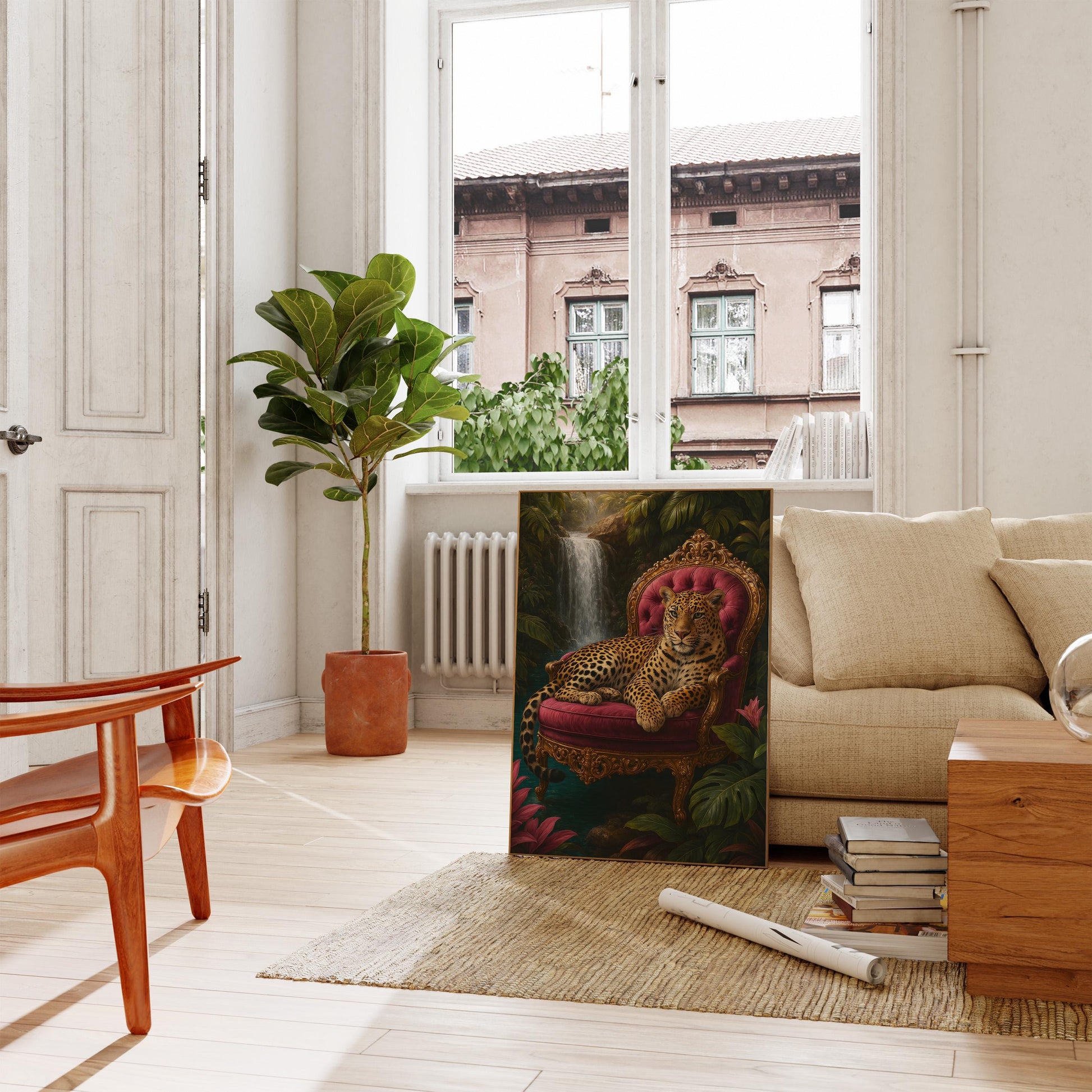 The Leopard Wall Art is a striking blend of maximalist charm and vintage luxury — a statement piece designed to elevate bedrooms, living rooms, studios, or any modern interior that craves personality and depth.