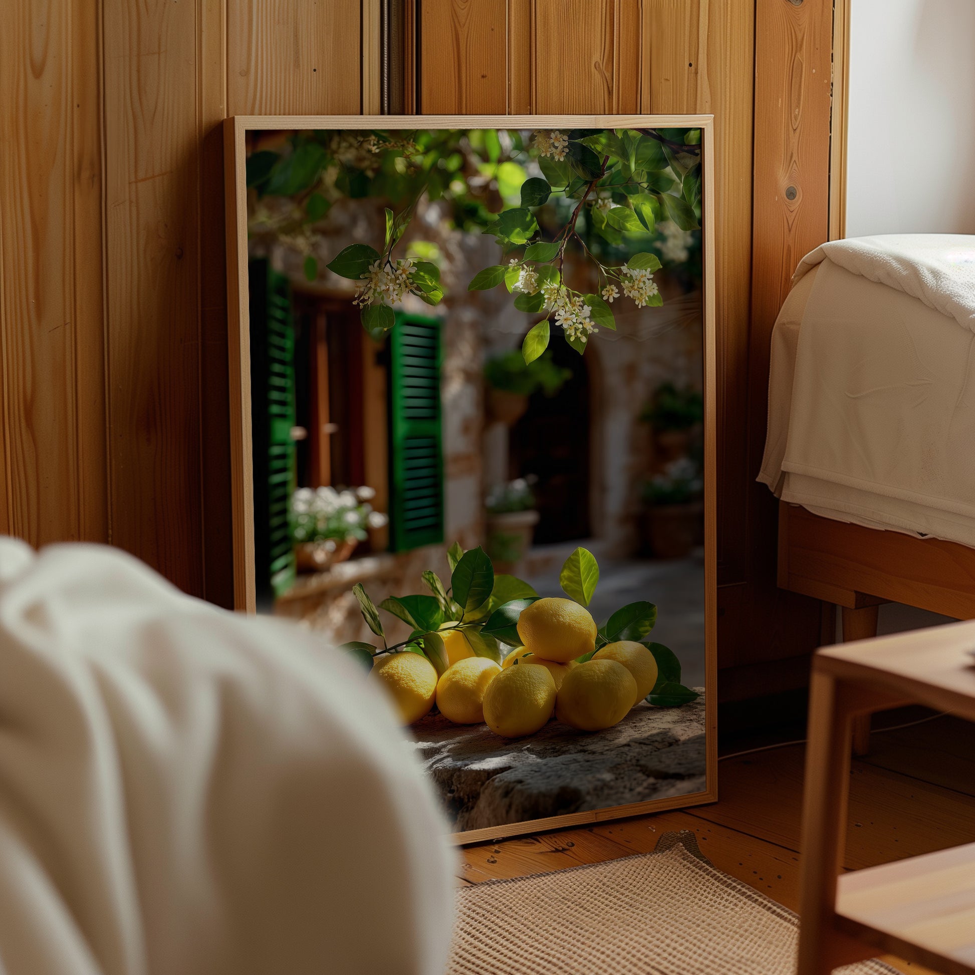Transporting the viewer straight to the Amalfi Coast or the Sicilian countryside, this piece radiates organic warmth and "La Dolce Vita" energy. It is an exquisite choice for brightening a kitchen, a breakfast nook, or a sunroom that needs a touch of zest. This print appeals to the "Old Money" travel aesthetic, celebrating the timeless beauty of nature and the slow, romantic pace of Mediterranean living.