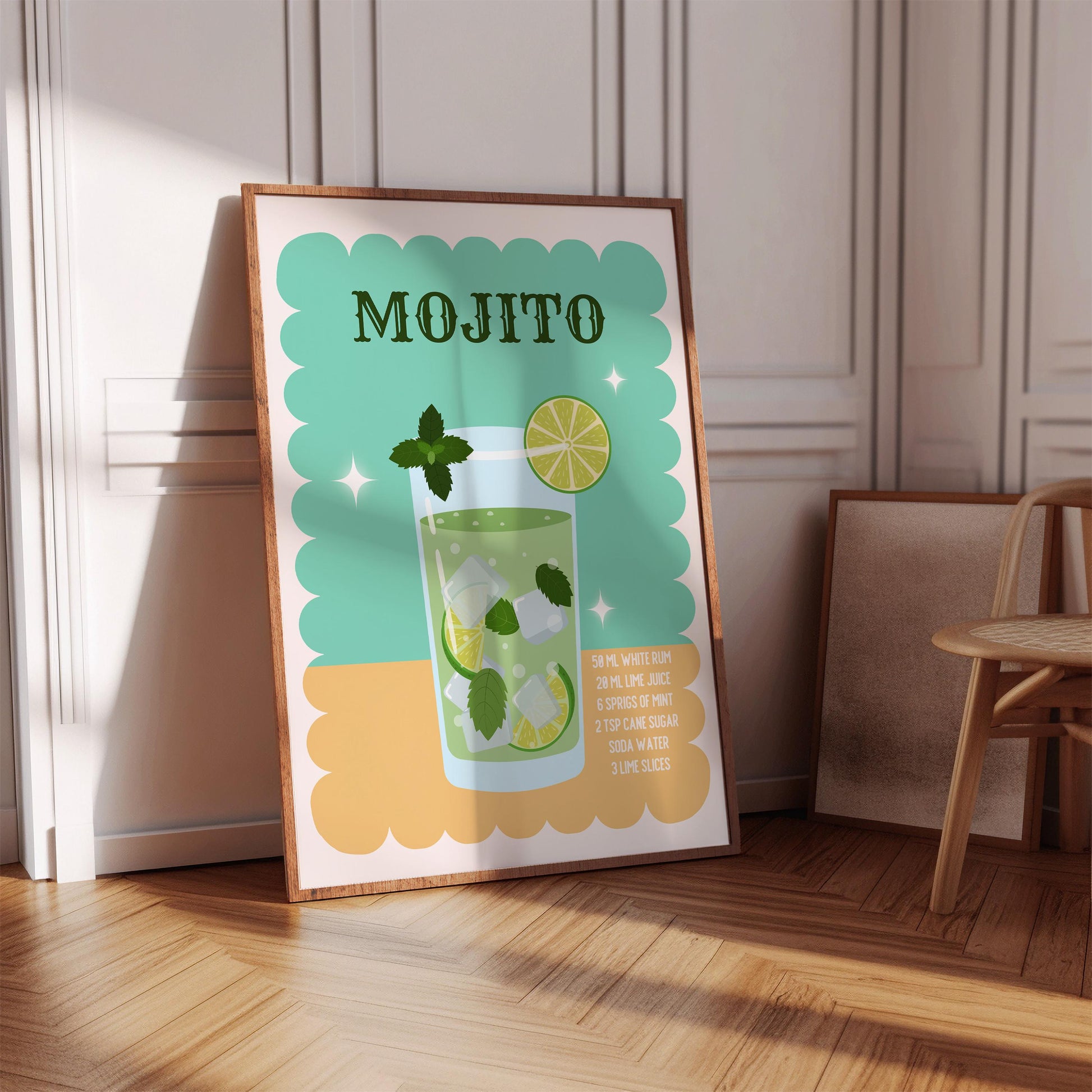 Modern mojito recipe artwork for bar and kitchen spaces