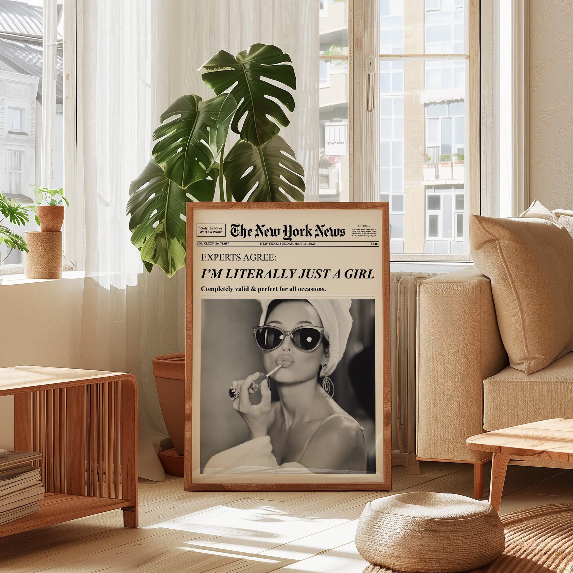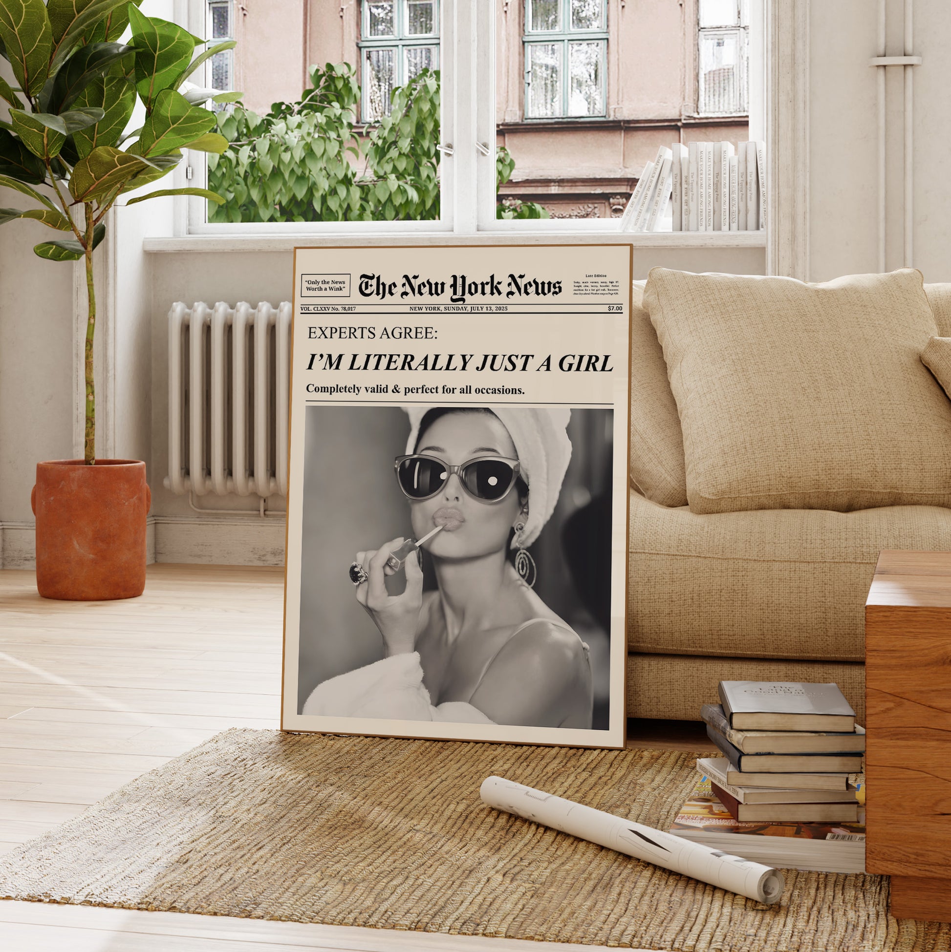 The New York Newspaper Poster blends retro magazine charm with a stylish contemporary edge — perfect for bedrooms, girly dorm rooms, creative studios, and trend-focused interiors.