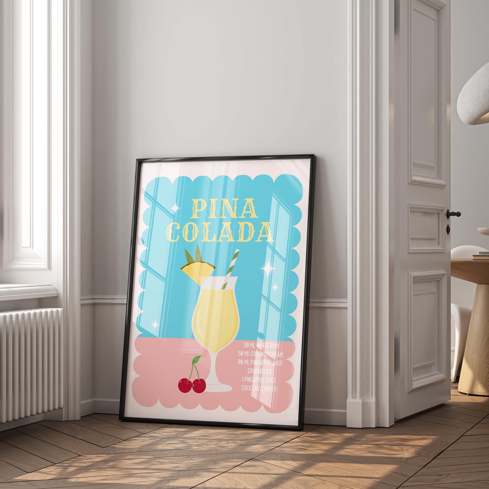 The Piña Colada Poster transforms an iconic cocktail recipe into elegant bar art — perfect for bar carts, kitchens, dining corners, or summer-inspired interiors.