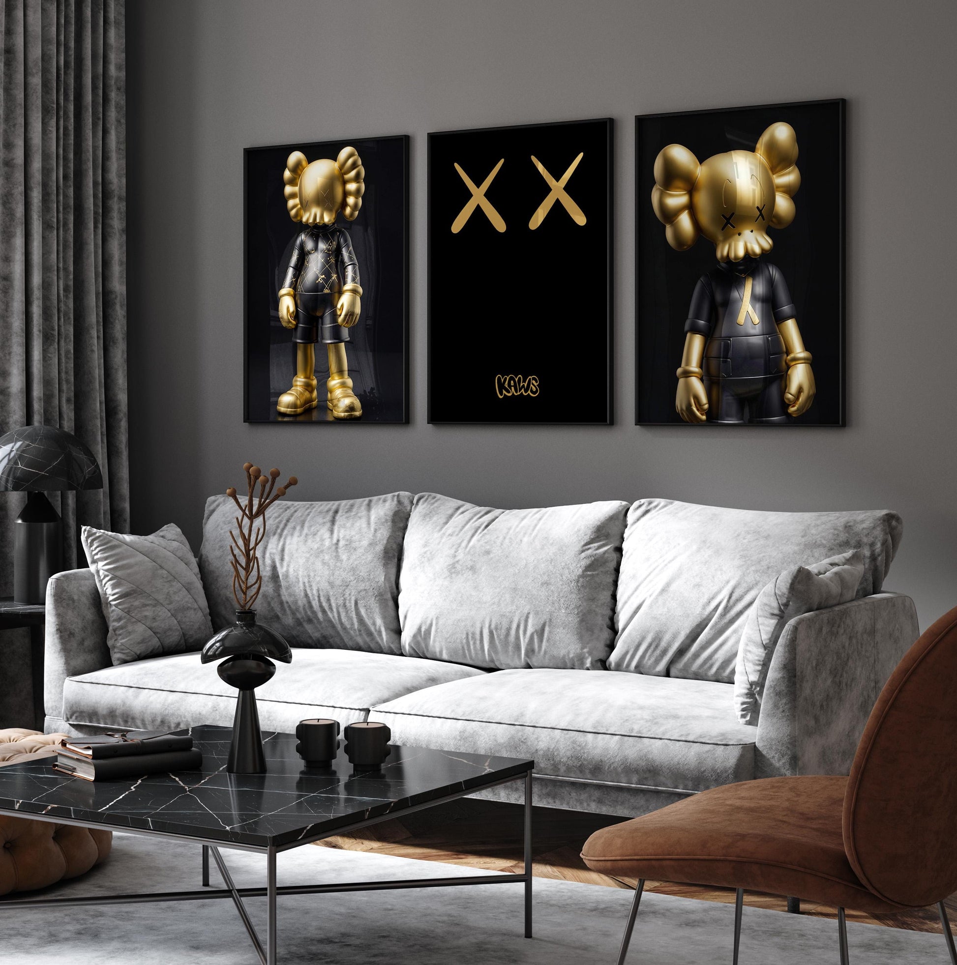 The RICH SET KAWS Trio brings together graffiti-inspired energy, hypebeast aesthetics, and collectible toy culture — crafted for interiors that love attitude, color, and street-luxury flair.