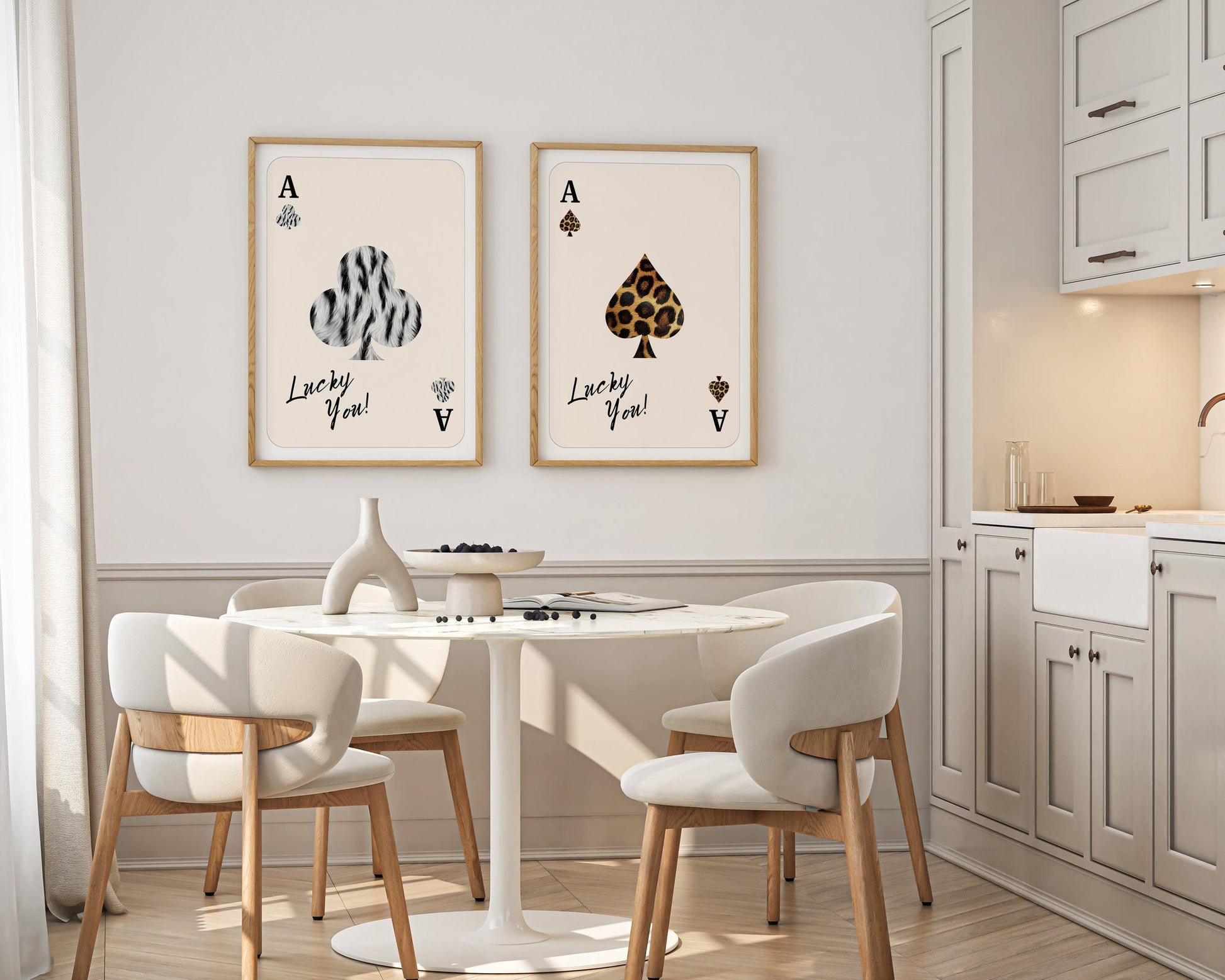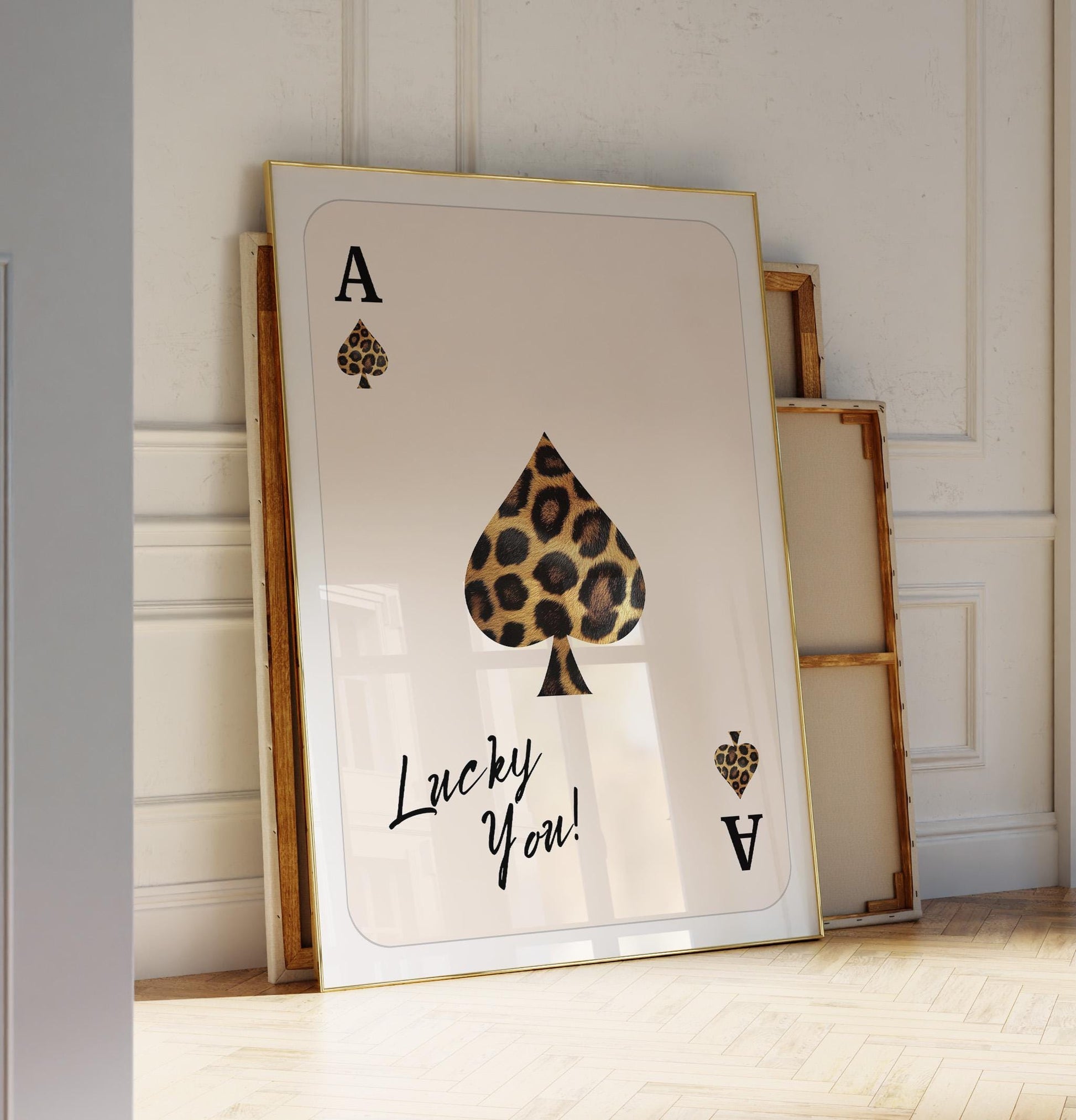 Bring bold personality into your space with this Set of 2 Playing Card Posters by LIUMER — featuring a chic leopard print card and a stylish zebra “Lucky You” design. Inspired by trendy 70s bar cart aesthetics, this duo is perfect for modern living rooms, home bars, game rooms, or coquette-style interiors that love a mix of fun and sophistication.